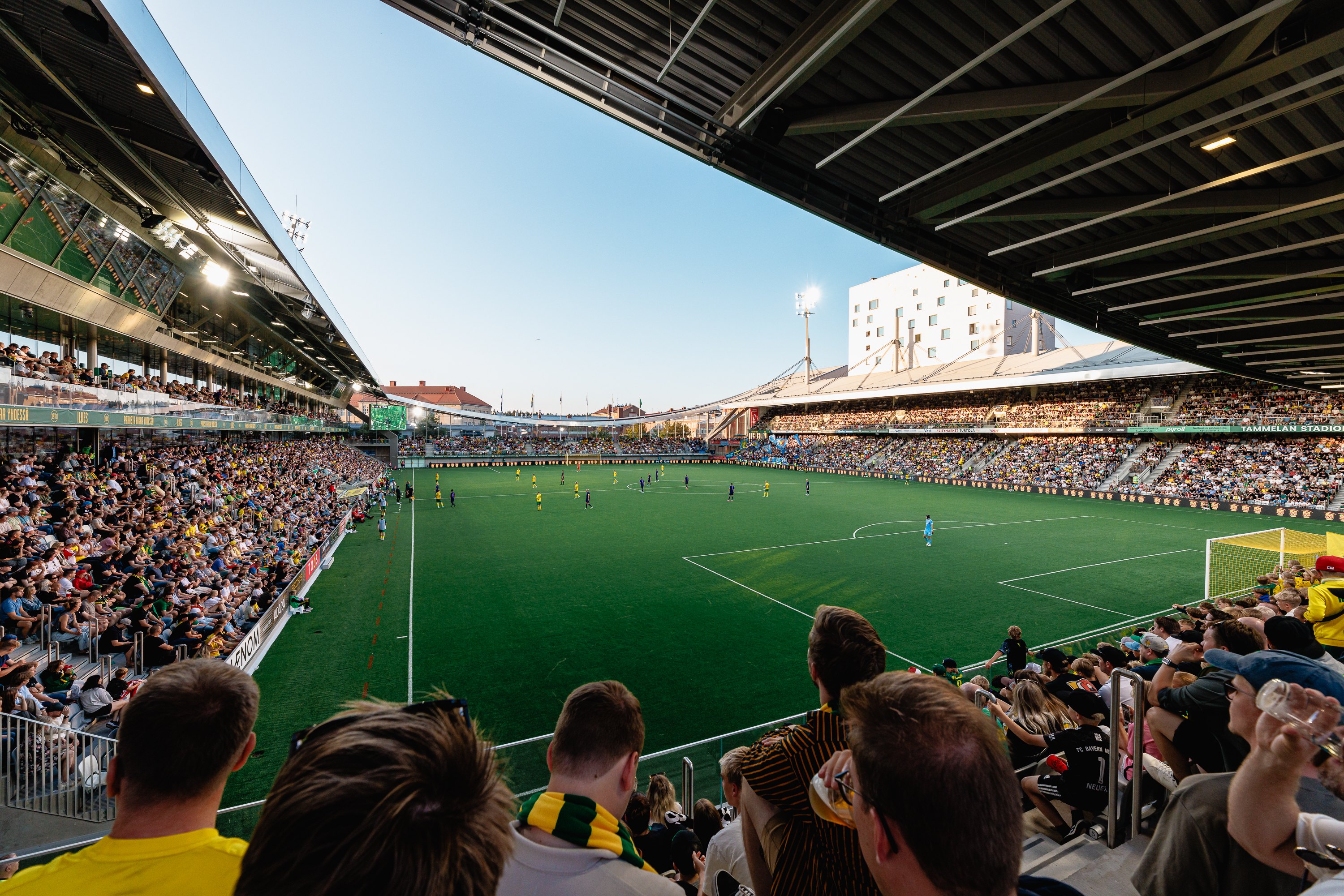Moderni jalkapallostadion, joka tarjoaa vieraanvaraisuus- ja kumppanuusmahdollisuuksia.